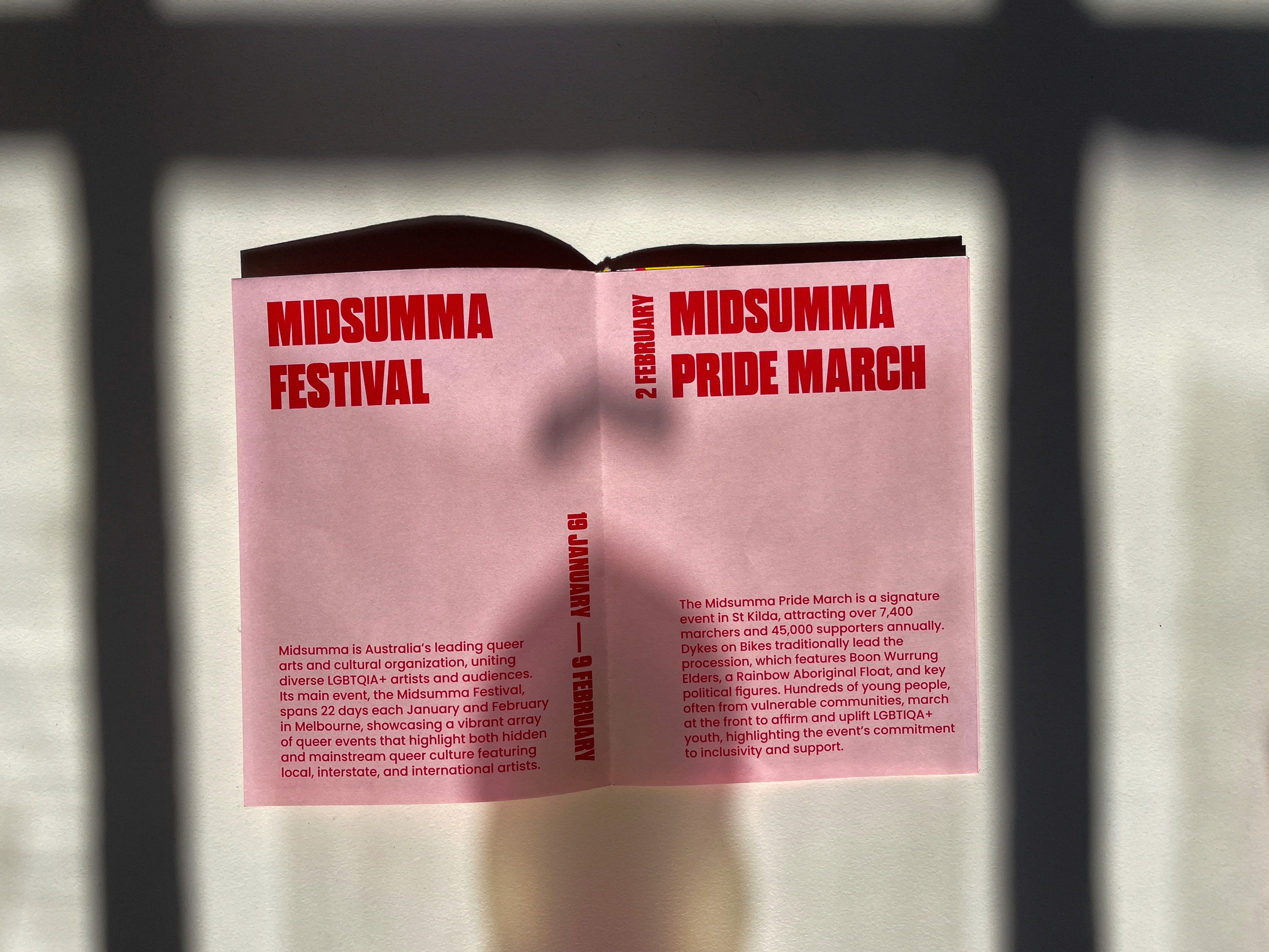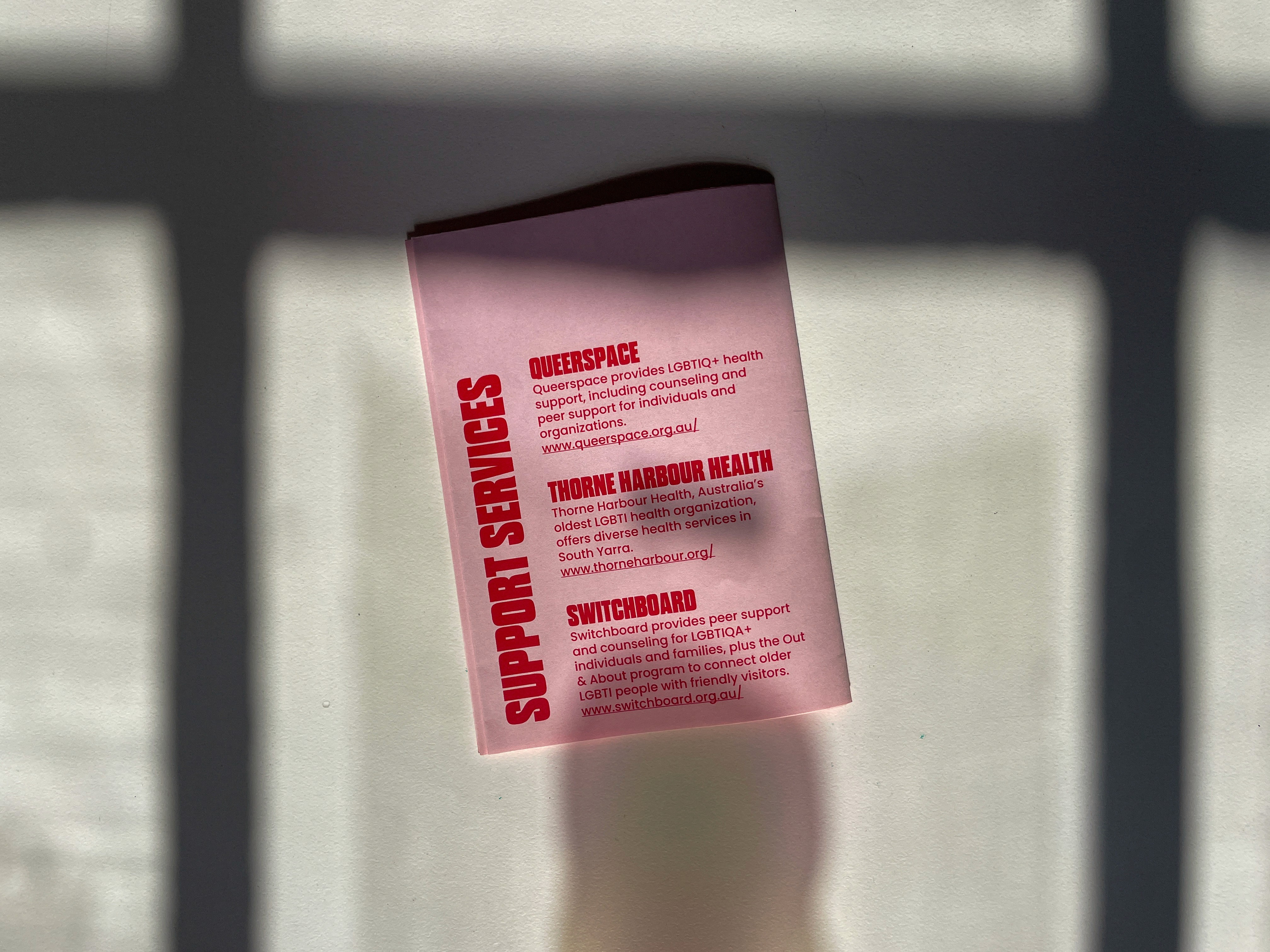 It is a free and widely accessible zine that is targeted toward supporting LGBTIQ+ communities around Melbourne. Sharing events, spaces, services and venues across the city, helping connect members of the community.
